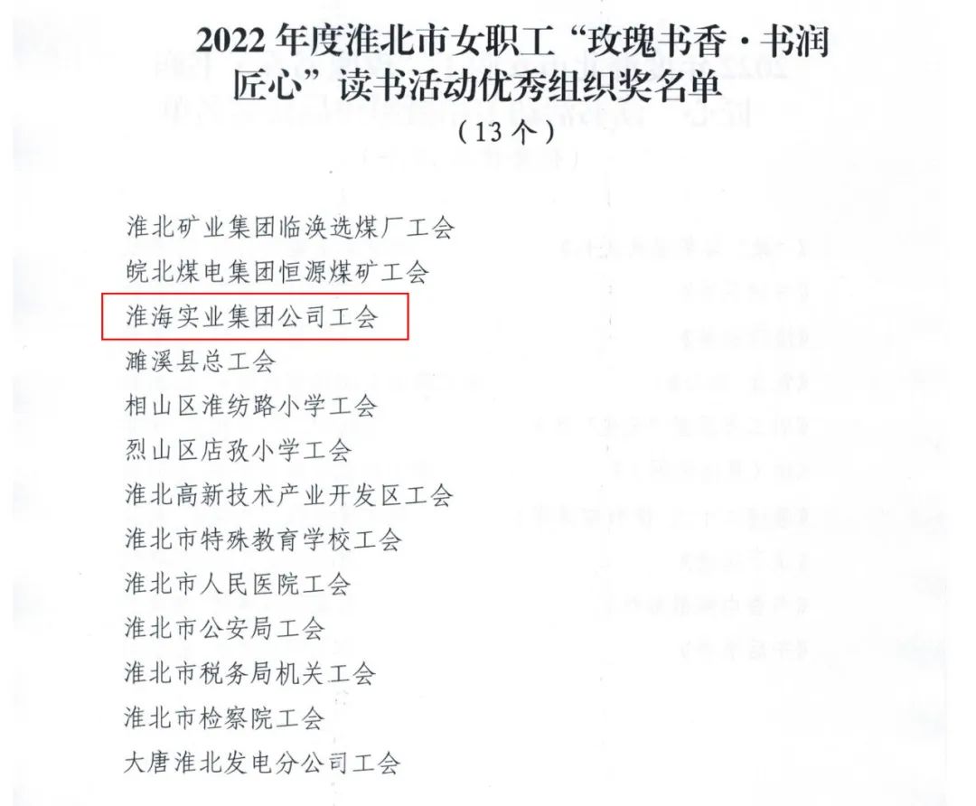 喜報(bào) | 淮海實(shí)業(yè)集團(tuán)工會(huì)獲淮北市總工會(huì)讀書活動(dòng)優(yōu)秀組織獎(jiǎng)
