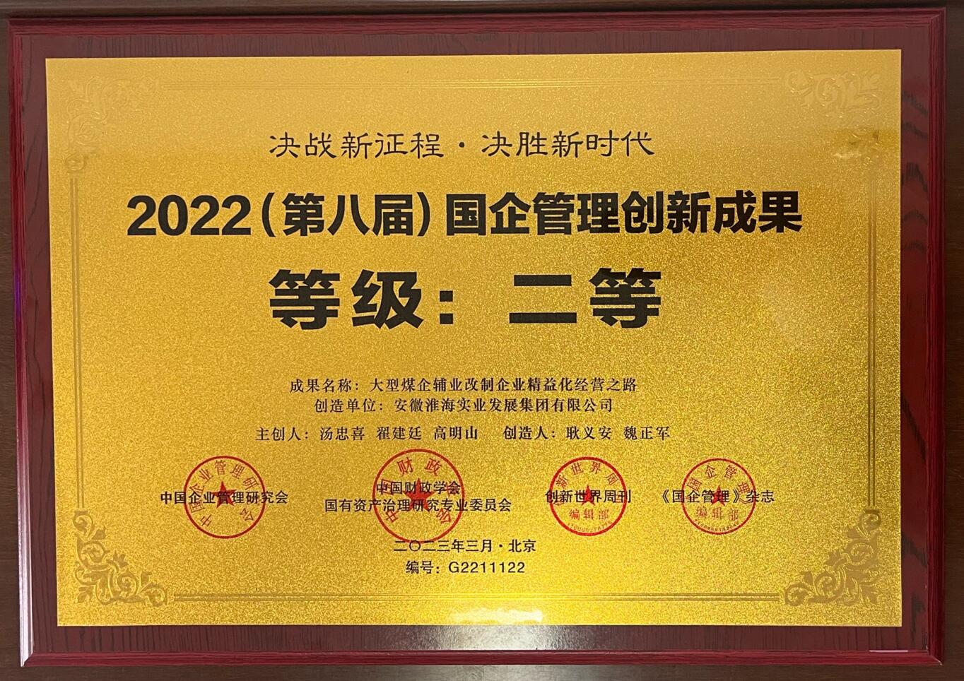 近日,2023國企管理智庫大會暨國企管理創(chuàng)新成果發(fā)布儀式在北京國際會議中心召開,淮海實業(yè)集團《大型煤企輔業(yè)改制企業(yè)精益化經(jīng)營之路》創(chuàng)新案例榮獲2022(第八屆)國企管理創(chuàng)新成果二等獎。據(jù)悉,本次創(chuàng)新成果評選是在全國范圍內(nèi)征集國企實踐成果和理論成果,旨在總結(jié)提煉國企管理典型經(jīng)驗和創(chuàng)新做法,樹立樣本,形成一批可復(fù)制、可推廣、高質(zhì)量、具有影響力的標(biāo)志性成果,通過示范效應(yīng)推動國企管理提升。集團公司作為“主輔分...