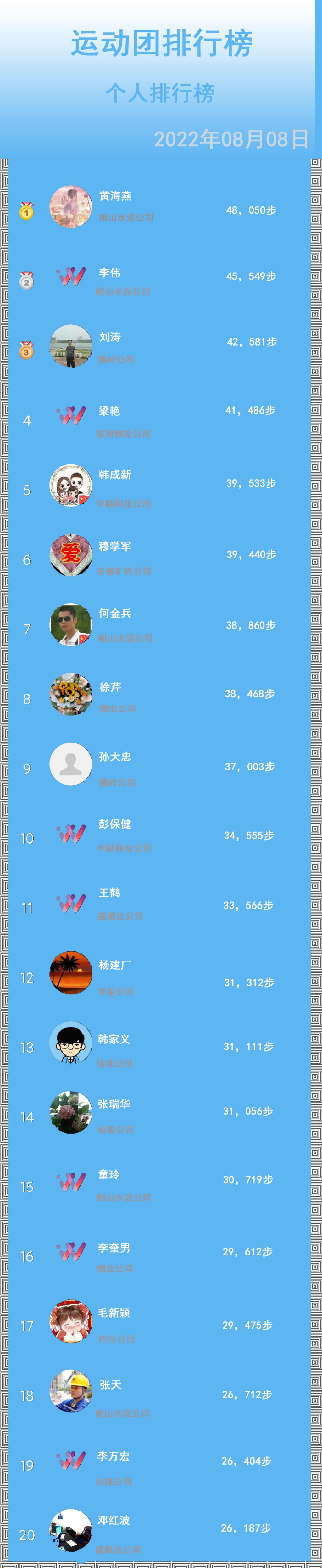 2022年8月8日是我國第14個(gè)“全民健身日”,集團(tuán)公司工會組織開展“快樂工作、健康生活”全民健身主題活動。 此次活動以15000步為基礎(chǔ)步數(shù),不設(shè)上限。通過精彩角逐,黃海燕、李偉、劉濤等20人從2076名參與職工中脫穎而出。 集團(tuán)公司工會將繼續(xù)開展全民健身、快樂健身各類活動,豐富廣大職工的業(yè)余生活,通過強(qiáng)身健體鼓足職工干勁,凝聚職工力量促發(fā)展,以奮進(jìn)者的昂揚(yáng)姿態(tài)迎接黨的二十大勝利召開。(杜薇