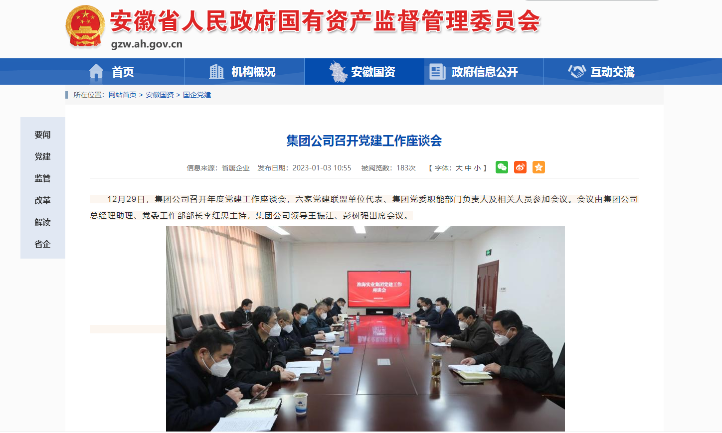 ???12月29日,集團公司召開年度黨建工作座談會,六家黨建聯(lián)盟單位代表、集團黨委職能部門負責人及相關人員參加會議。會議由集團公司總經(jīng)理助理、黨委工作部部長李紅忠主持,集團公司領導王振江、彭樹強出席會議。