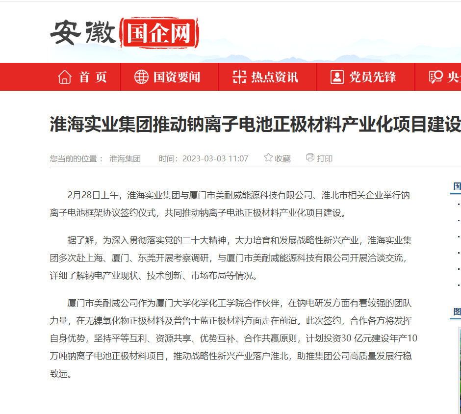 淮海實業(yè)集團推動鈉離子電池正極材料產(chǎn)業(yè)化項目建設