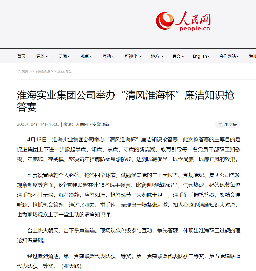 4月13日,淮海實(shí)業(yè)集團(tuán)公司舉辦“清風(fēng)淮海杯”廉潔知識(shí)搶答賽,此次搶答賽的主要目的是促進(jìn)集團(tuán)上下進(jìn)一步掀起學(xué)廉、知廉、崇廉、守廉的新高潮,教育引導(dǎo)每一名黨員干部職工知敬畏、守底線(xiàn)、存戒懼,堅(jiān)決筑牢拒腐防變思想防線(xiàn),達(dá)到以賽促學(xué)、以學(xué)尚廉、以廉正風(fēng)的效果。