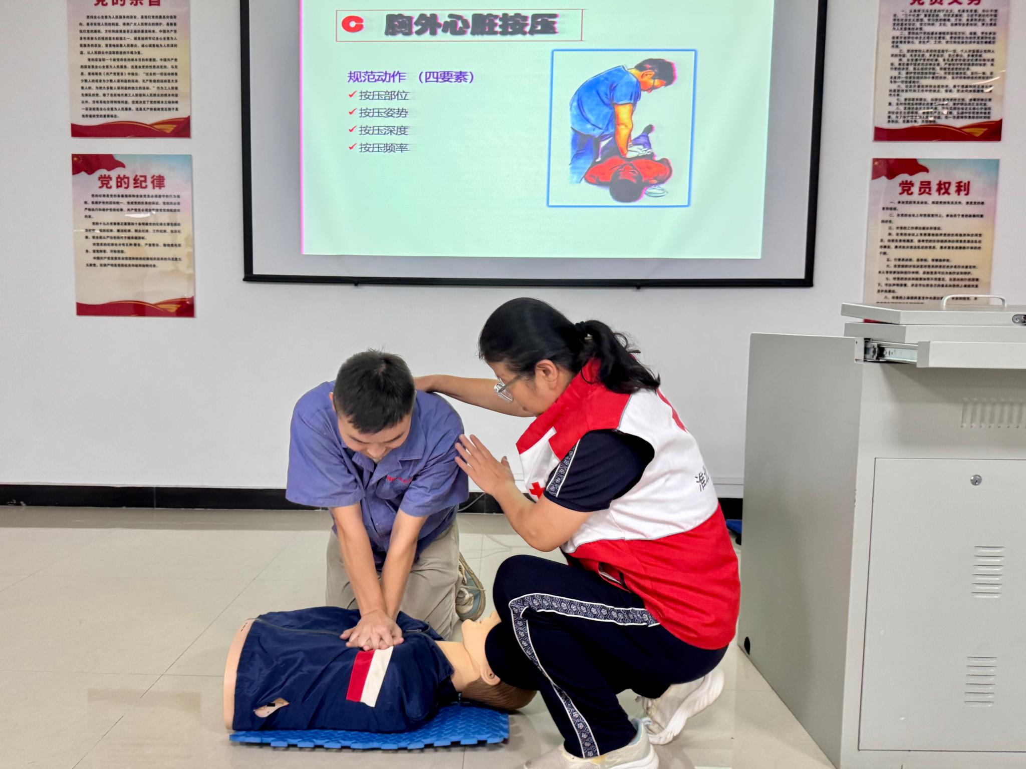 為進(jìn)一步提升廣大職工應(yīng)對突發(fā)意外傷害的應(yīng)急處置能力,筑牢生命安全防線,7月18日,淮海實(shí)業(yè)集團(tuán)工會特邀應(yīng)急救護(hù)領(lǐng)域?qū)<依顣r(shí)英老師,為職工講解“心肺復(fù)蘇”“氣道異物梗阻處置”等應(yīng)急救護(hù)知識,40余名職工現(xiàn)場參加。