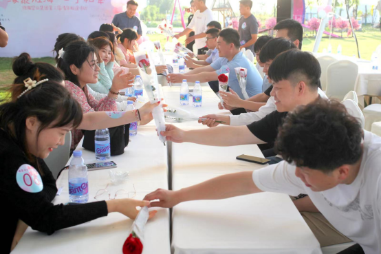 活動(dòng)在淮北市百蓮百荷景區(qū)舉行,“擊鼓傳花”“兩人三足”“你劃我猜”環(huán)節(jié)讓青年們?cè)诤唵蔚挠螒蛑醒杆佟捌票?,通過初步了解,拉近彼此間的距離;“很高興認(rèn)識(shí)你”“緣來是你”環(huán)節(jié)把活動(dòng)氣氛推向高潮,青年們熱情高漲、敞開心扉、表白真心、尋求真愛。