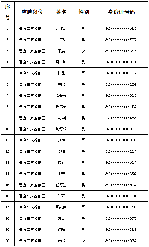 安徽省礦業(yè)機(jī)電裝備有限責(zé)任公司公開(kāi)招聘報(bào)名資格初審已結(jié)束,現(xiàn)將通過(guò)報(bào)名資格初審的人員名單及面試工作公告如下: