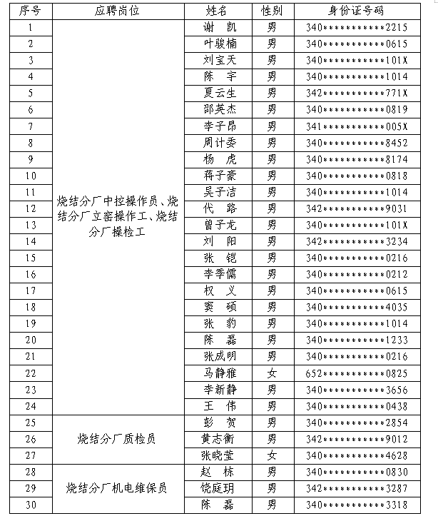 安徽淮海新材料有限責(zé)任公司技能人才招聘面試工作已結(jié)束,現(xiàn)將考察人選名單公告如下: