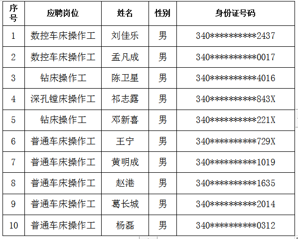 安徽省礦業(yè)機(jī)電裝備有限責(zé)任公司于2023年6月30日發(fā)布招聘公告、開展招聘工作,經(jīng)過面試、考察、體檢和集體研究,現(xiàn)將擬錄用人員名單公告如下:
