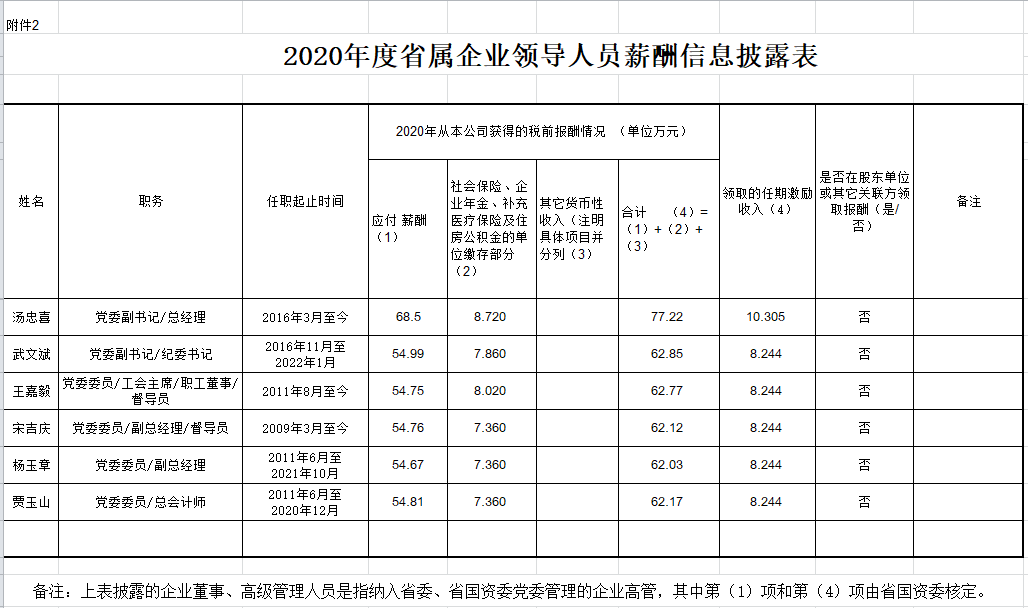 2020年度省屬企業(yè)領(lǐng)導人員薪酬信息披露