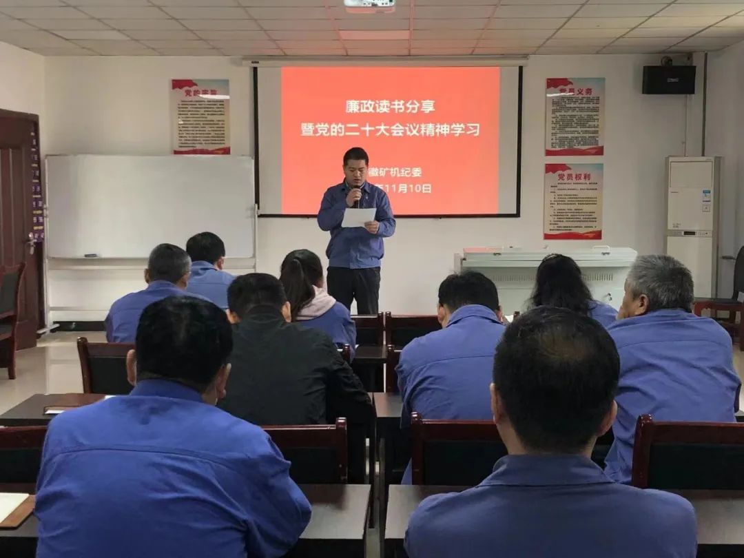 為進一步深入學習貫徹黨的二十大精神,營造多讀書、讀好書、勤交流、促提升的良好氛圍,引導幫助黨員干部淬煉思想、涵養(yǎng)正氣,錘煉忠誠干凈擔當的政治品格,近日,安徽礦機舉辦黨的二十大精神學習交流暨廉政讀書分享會,各基層黨支部書記、相關職能部門重點崗位人員等參加了分享會。