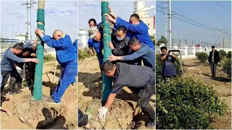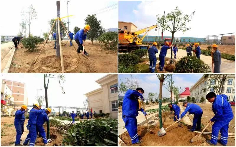 公司從8月中旬起開(kāi)始整地覆土,9月組織各支部平整場(chǎng)地,清撿石塊、垃圾,放線定位,公司各單位員工進(jìn)行翻土,挖坑,裝車,搬運(yùn)、種植、修剪、澆水,全流程約1000名員工參與植樹。廠區(qū)綠化面積約3萬(wàn)平方,香樟、紫薇等樹600余棵;紅葉石楠苗、衛(wèi)矛苗等苗10萬(wàn)余株;亮晶女貞苗、冬青球1000余棵,鋪設(shè)草坪3萬(wàn)平方。