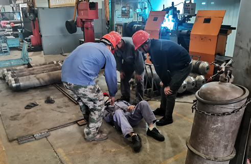 作為高溫作業(yè)重地的生產(chǎn)車間,夏季作業(yè)溫度可達40℃以上,爐前作業(yè)溫度更是高達50℃,為提高高溫中暑應急救治能力,將意外傷害降到最低,下料車間、液壓車間、熱鍛分公司開展“救‘暑’你行”應急演練活動。從發(fā)現(xiàn)異常、人員部署、展開救援、綜合保障等環(huán)節(jié),開展應急處置。演練結(jié)束后,現(xiàn)場安全員對演練科目各環(huán)節(jié)開展講評,完善應急預案,明確改進措施,提高演練水平。