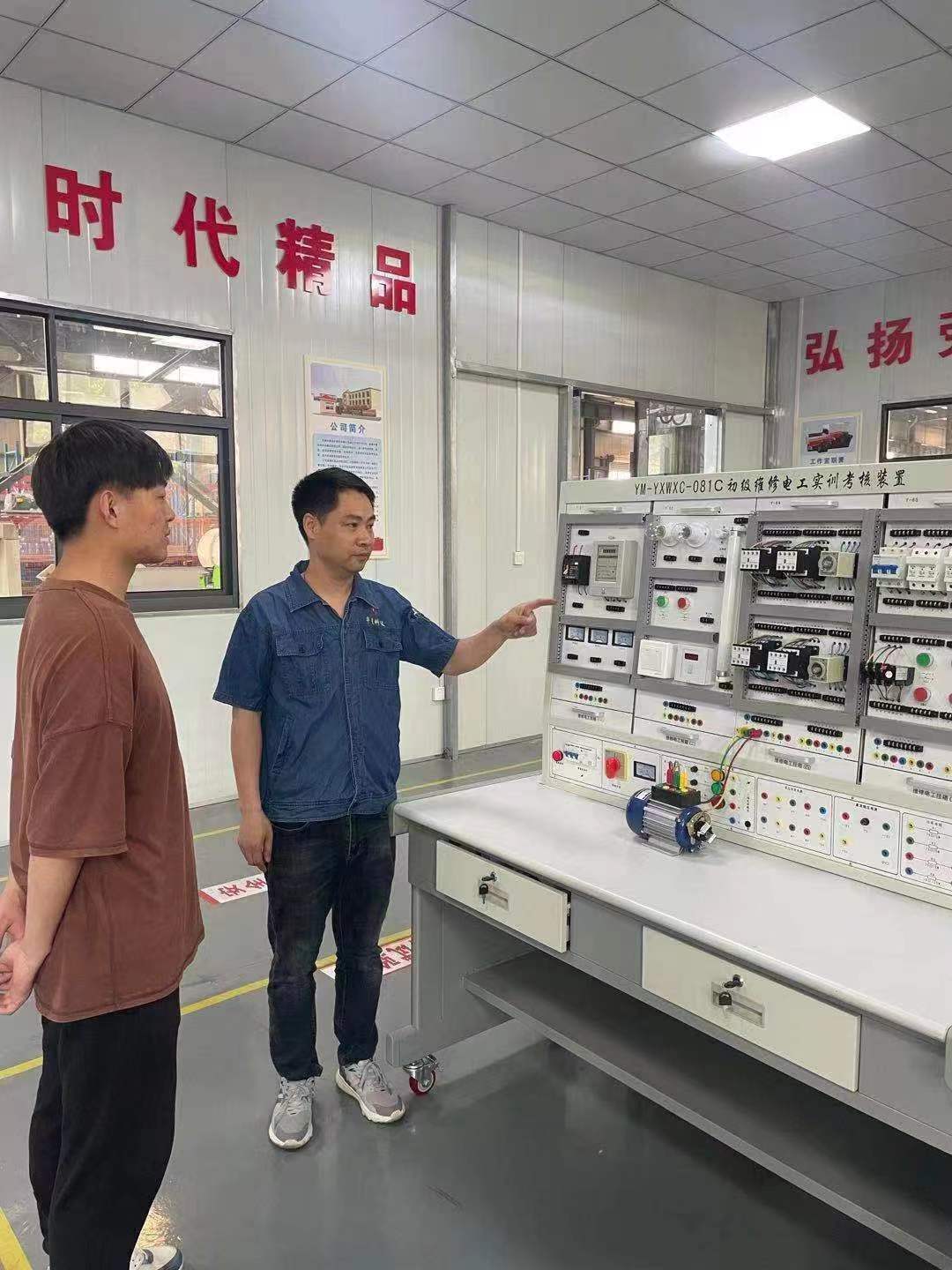走進(jìn)華星公司勞模創(chuàng)新工作室,最先映入眼簾的即是擺在工作室中央的培訓(xùn)裝置。“這是我們引進(jìn)的YM-YXWXC-081C電工實(shí)訓(xùn)考核裝置,主要用于電力操作實(shí)習(xí),它是教會(huì)我們實(shí)操演練的機(jī)器‘老師’”集團(tuán)公司勞動(dòng)模范、華星公司洗選設(shè)備制造廠電工班班長(zhǎng)王創(chuàng)風(fēng)趣地說道。