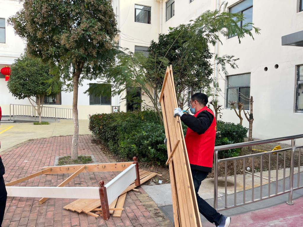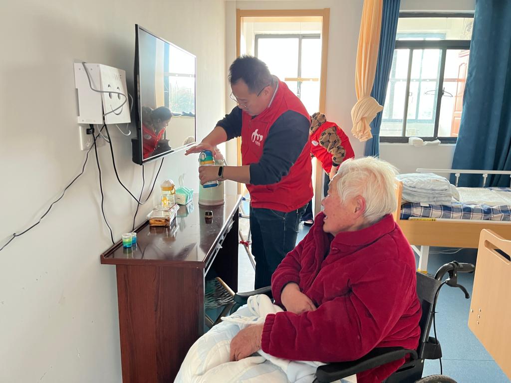 共產(chǎn)黨員張雪燕帶領(lǐng)志愿者們,整理床鋪、擦拭家具、擦洗門窗、掃地拖地,一邊干活、一邊與老人拉起家常,了解生活情況……。“哇,房間整潔了,心情舒適很多。”老人們相互打趣,充滿了歡聲笑語(yǔ)。