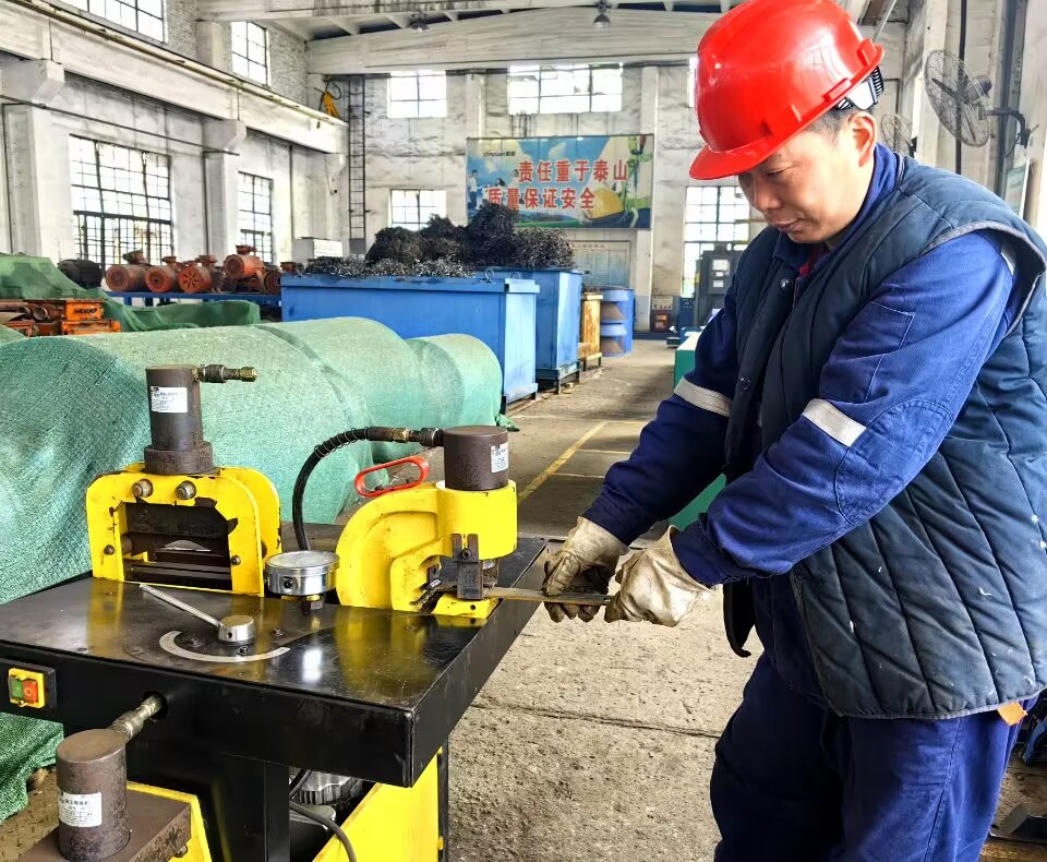 “技改后的液壓沖孔機操作真是太方便了,既節省了人工成本,又提高了安全性能,有效保證了多批量訂單的及時供應。”3月7日上午,新園公司機電維修廠熱火朝天,精加工班楊碩班長,正在現場演示他們攻堅小隊的小發明。