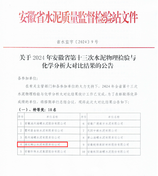 工欲善其事,必先利其器。近日,筆者從相山水泥了解到,該公司斬獲安徽省第十三次物理檢驗(yàn)與化學(xué)分析大對(duì)比“特等獎(jiǎng)”,躋身省水泥質(zhì)量監(jiān)督檢驗(yàn)“第一方陣”。