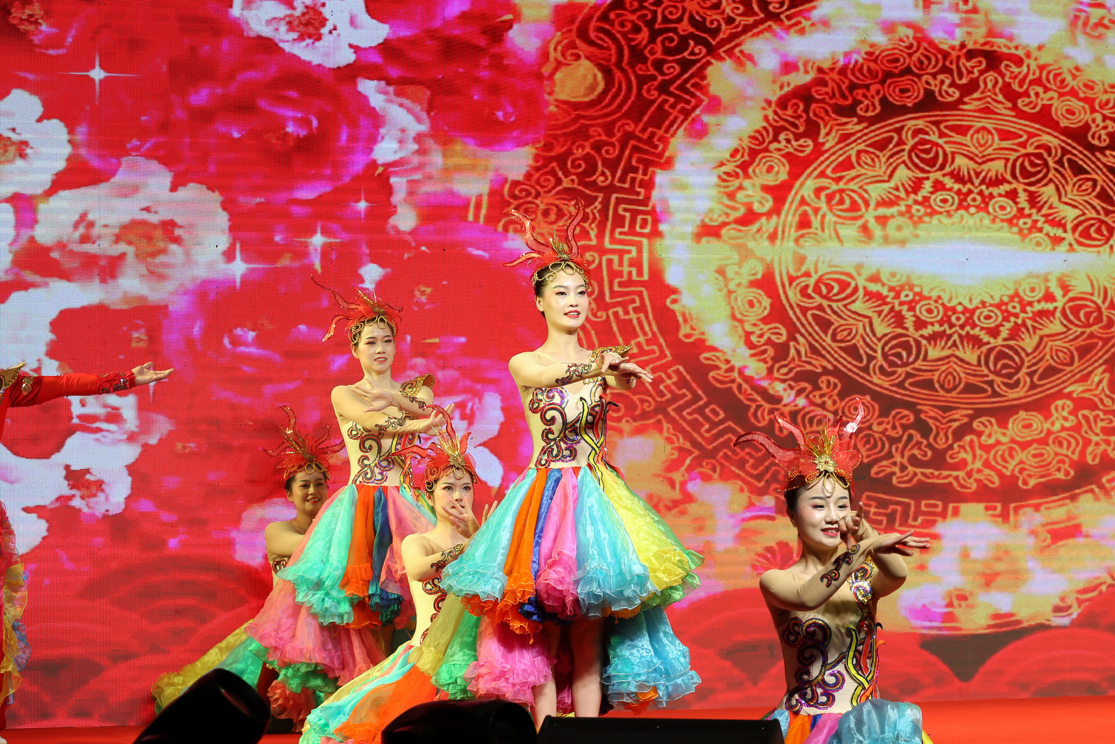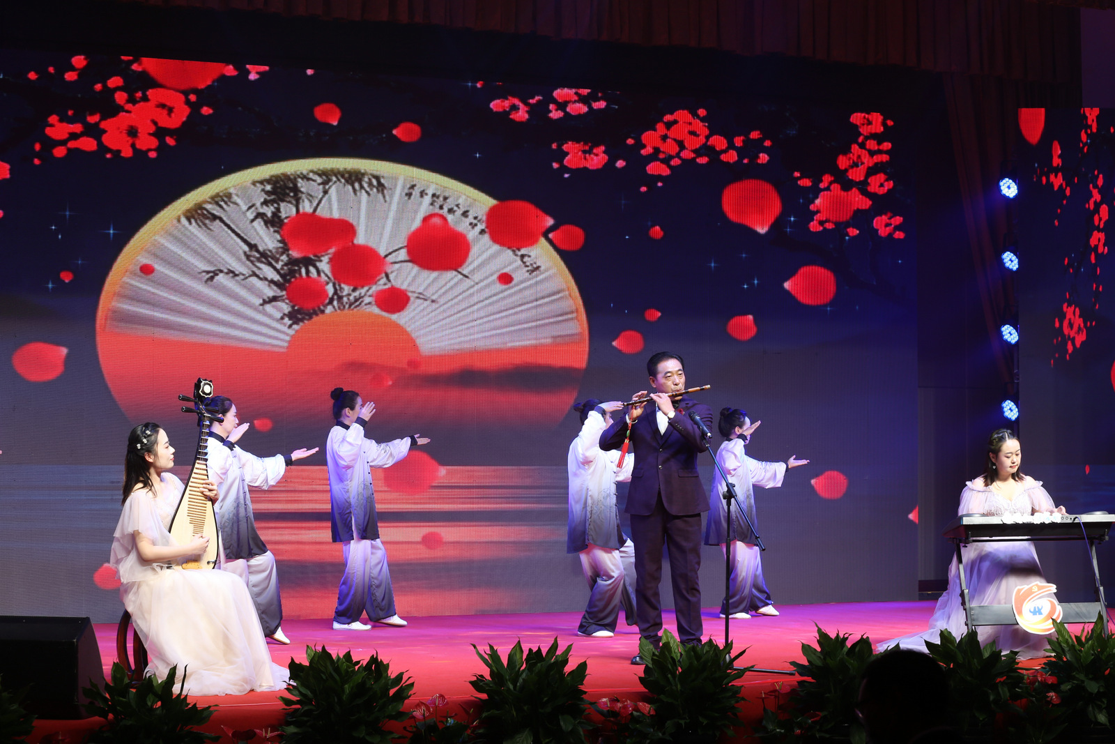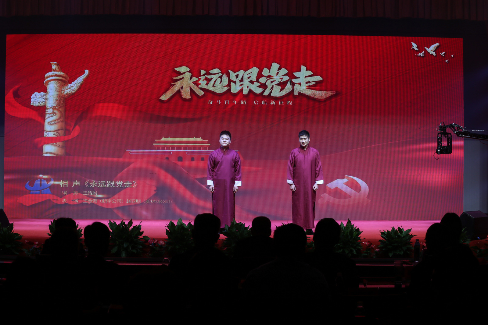 匯演現(xiàn)場,燈光背景交織變換,或像旗幟飄揚,或像畫卷鋪開,每一次的舞臺變化,都牢牢吸引了觀眾的目光,營造出喜迎黨的二十大勝利召開的濃厚氛圍。
