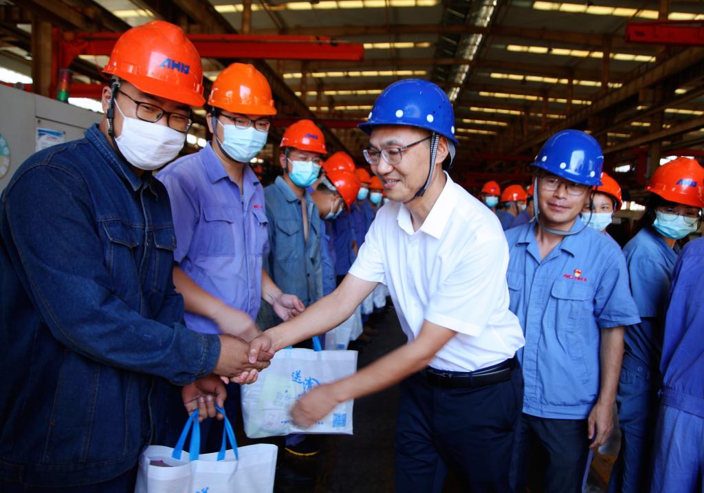 8月24日,淮北市總工會(huì)黨組成員、副主席丁建軍到安徽礦機(jī)開(kāi)展“送清涼”活動(dòng),集團(tuán)公司黨委副書(shū)記、工會(huì)主席王振江陪同慰問(wèn)。
