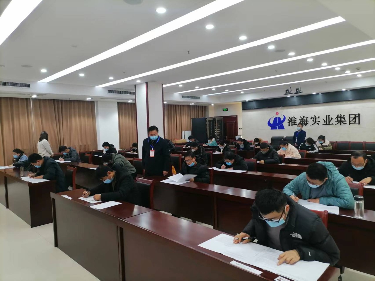 12月10日上午,淮海實業(yè)集團在淮??萍即髲B一樓會議室、二樓西會議室組織開展機關工作人員選聘考試,來自各基層單位的77名人員參加了考試?;春崢I(yè)集團總經理助理、黨委工作部部長李紅忠到現場巡考。